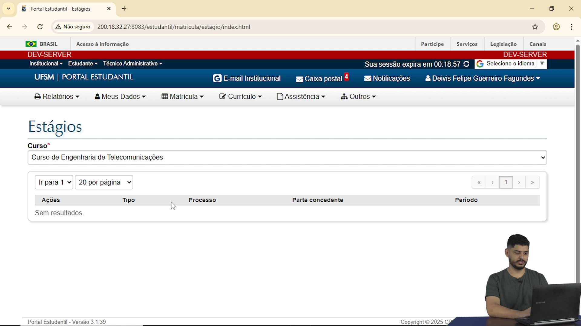 Tutorial para a solicitação de estágio através do Portal do Aluno.